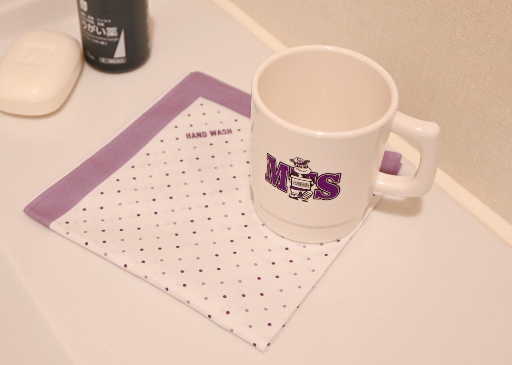 MILK TEA SERVICEのマスコット、みんな大好きミッティーのカップとハンカチのセットです。
